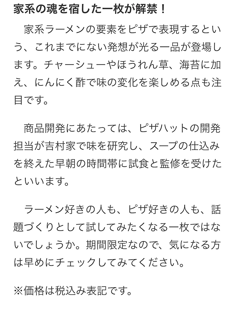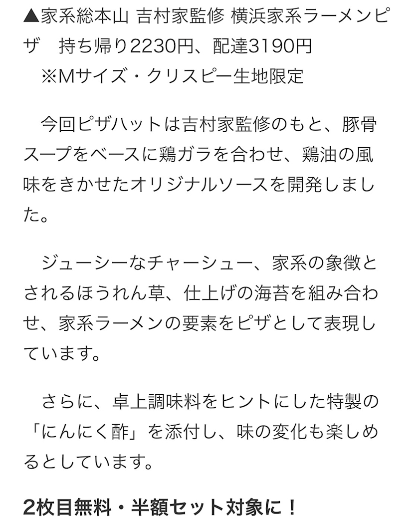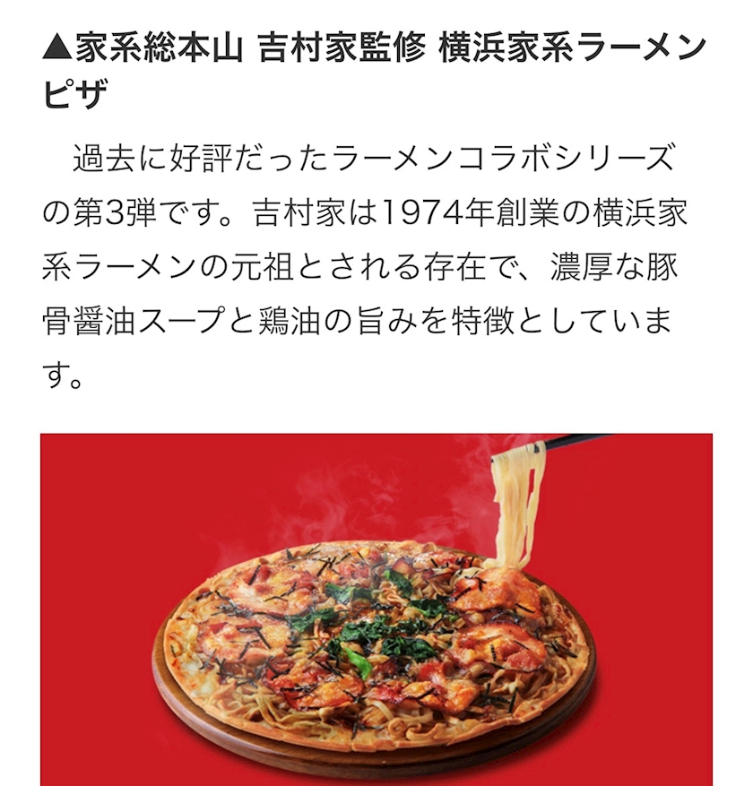 ”横浜家系”ラーメンピザ発売!