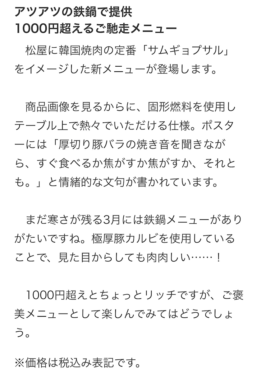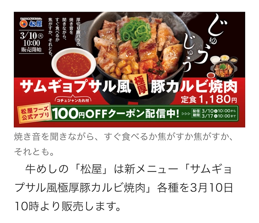松屋の新メニュー