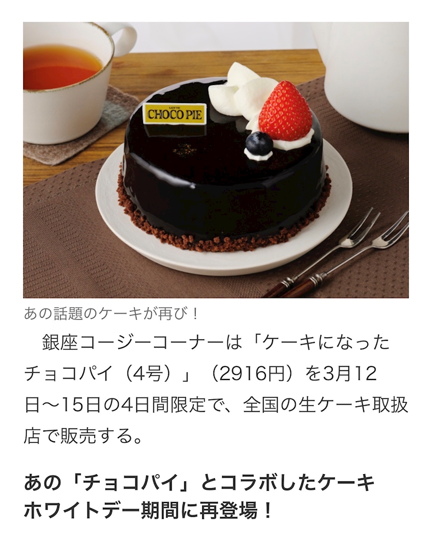 話題の「チョコパイ」ケーキ再び!
