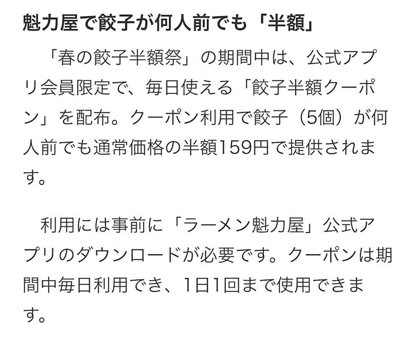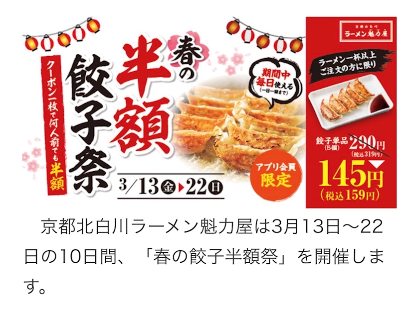 「春の餃子半額祭」