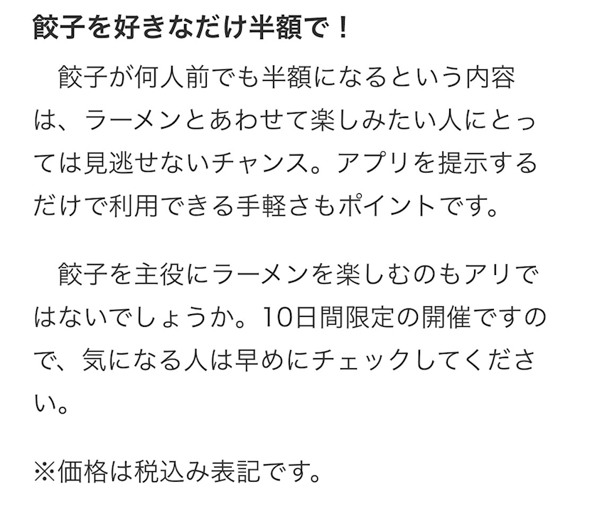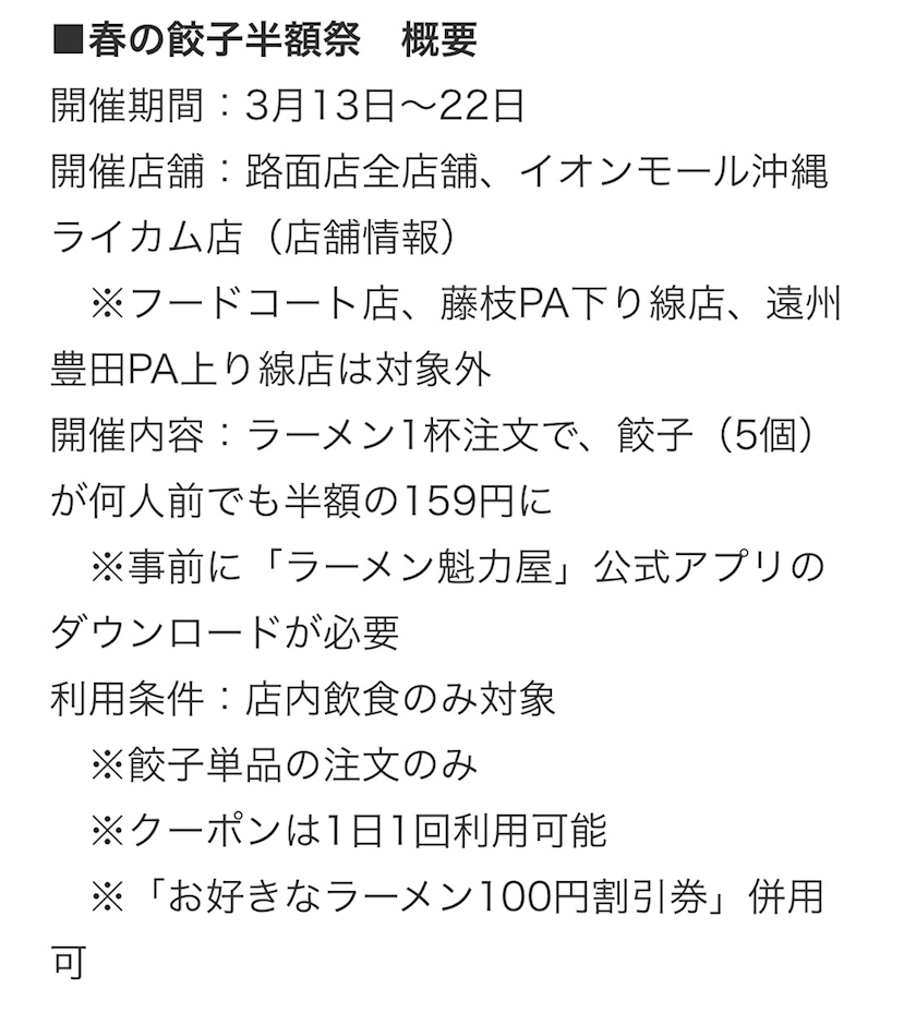 「春の餃子半額祭」のご紹介でした