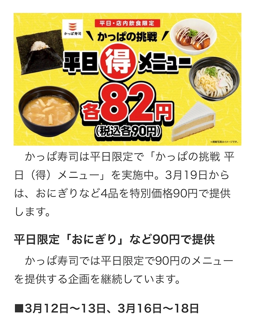 「かっぱの挑戦 平日(得)メニュー」のご紹介でした