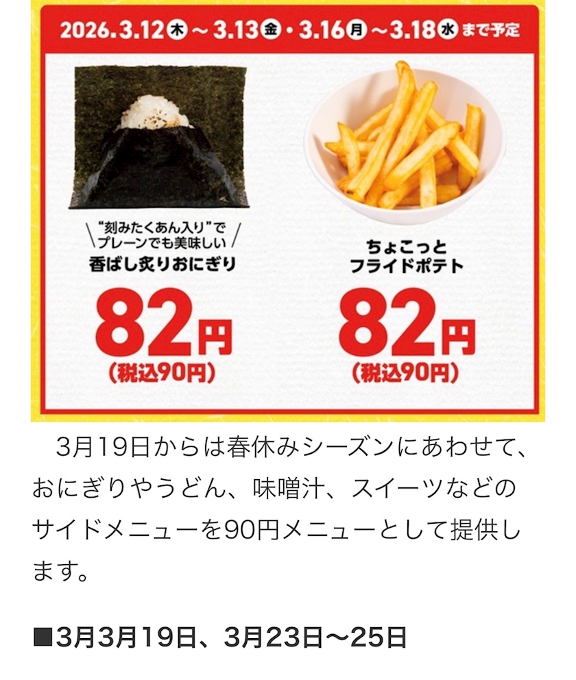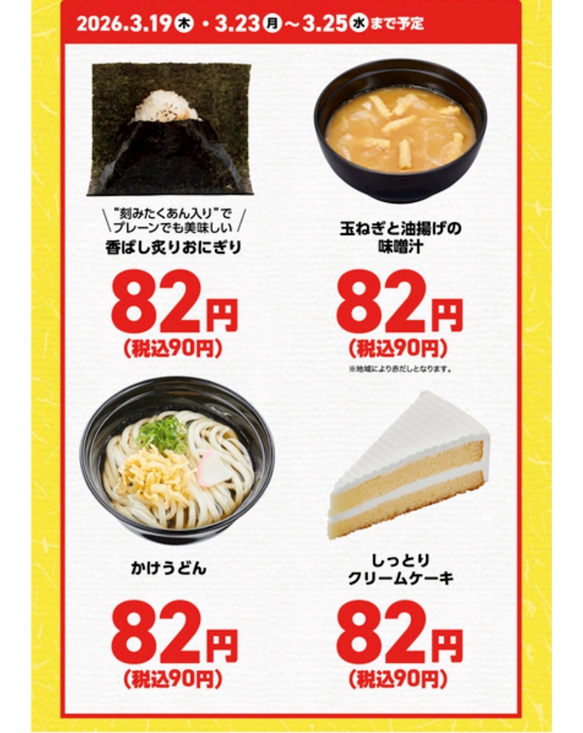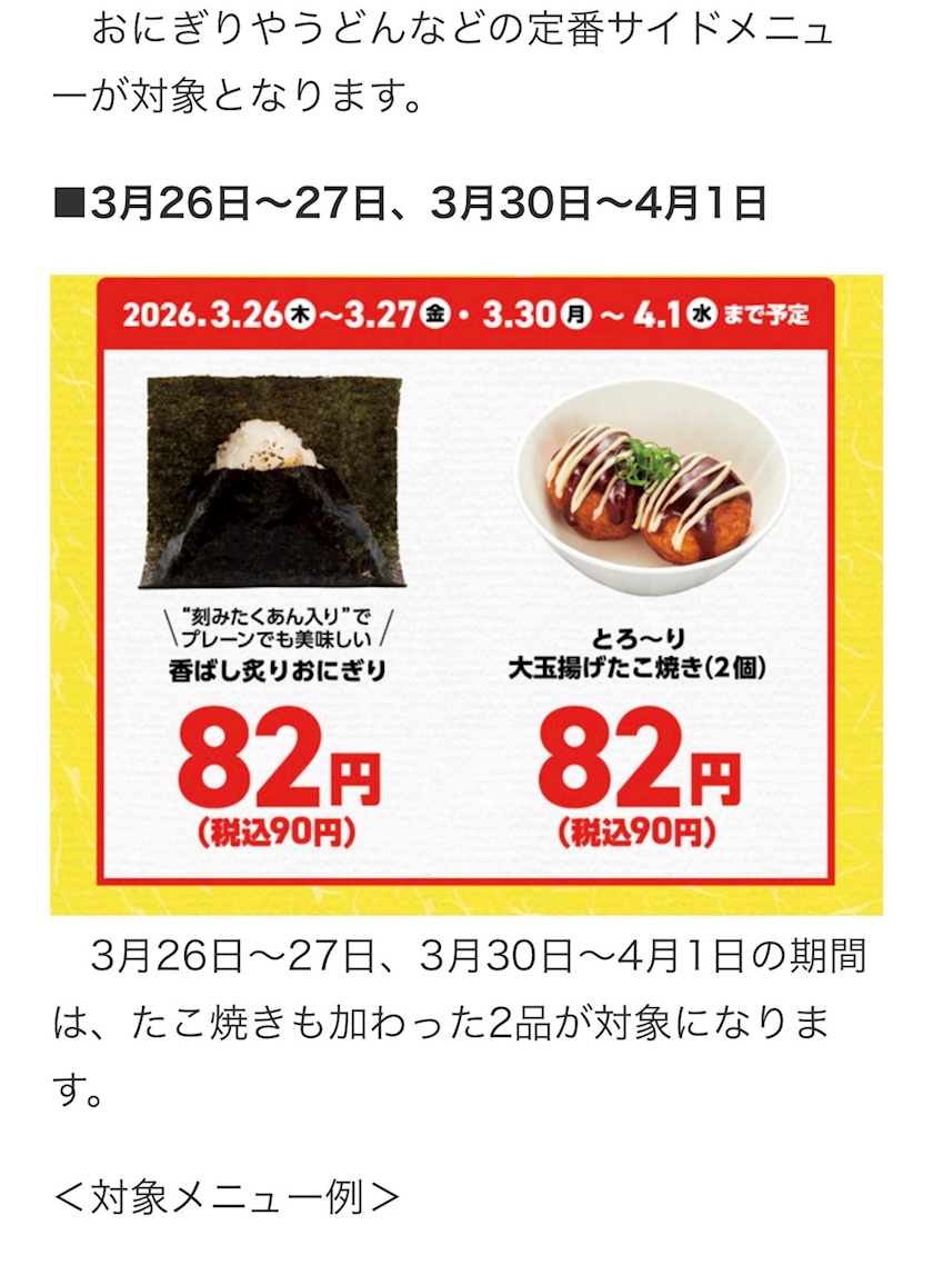 おにぎり・うどん・たこ焼きが90円は安い!