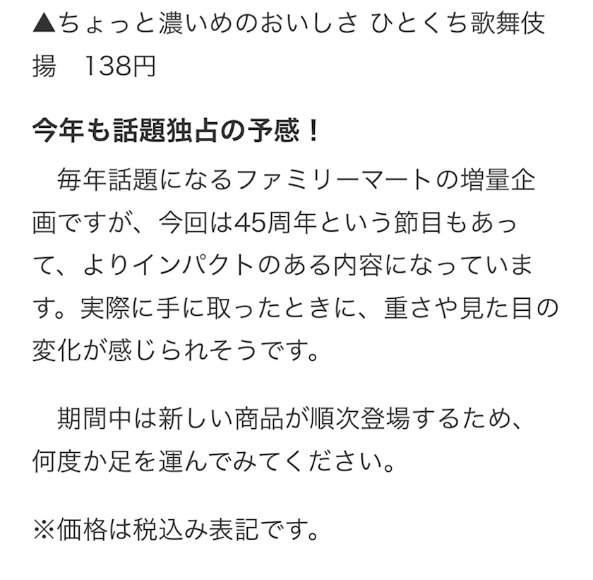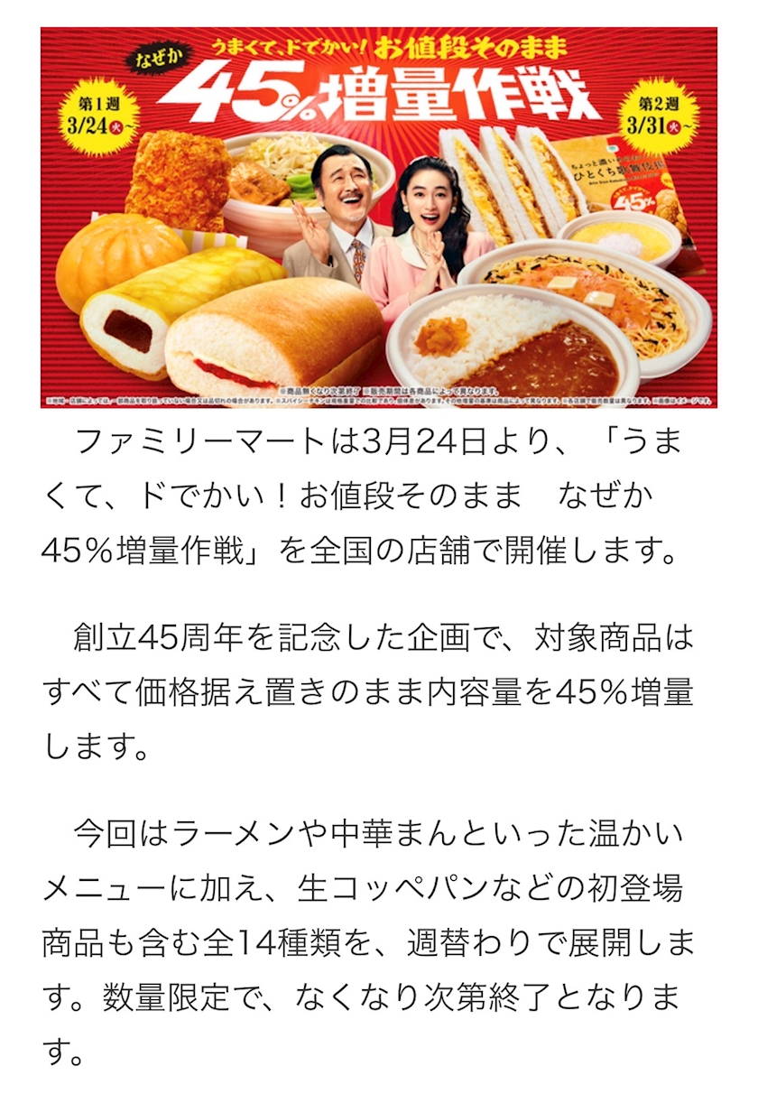 ファミリーマートの増量企画