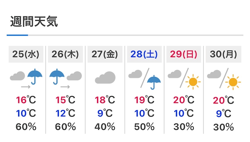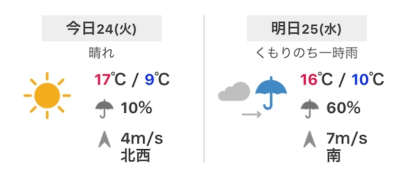 最高気温は17℃の予報です。