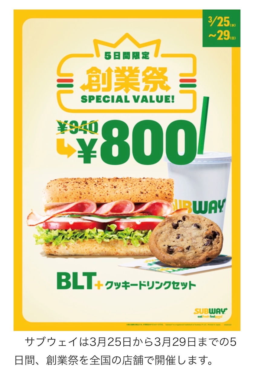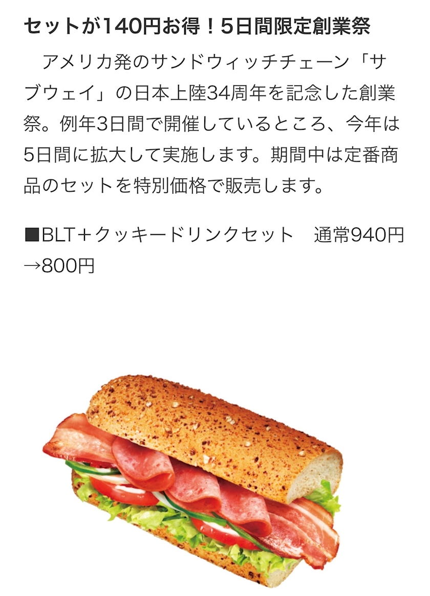 サブウェイの「創業祭」のご紹介でした