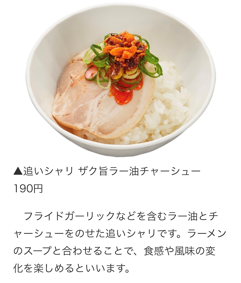 「追いシャリザク旨ラー油チャーシュー」の