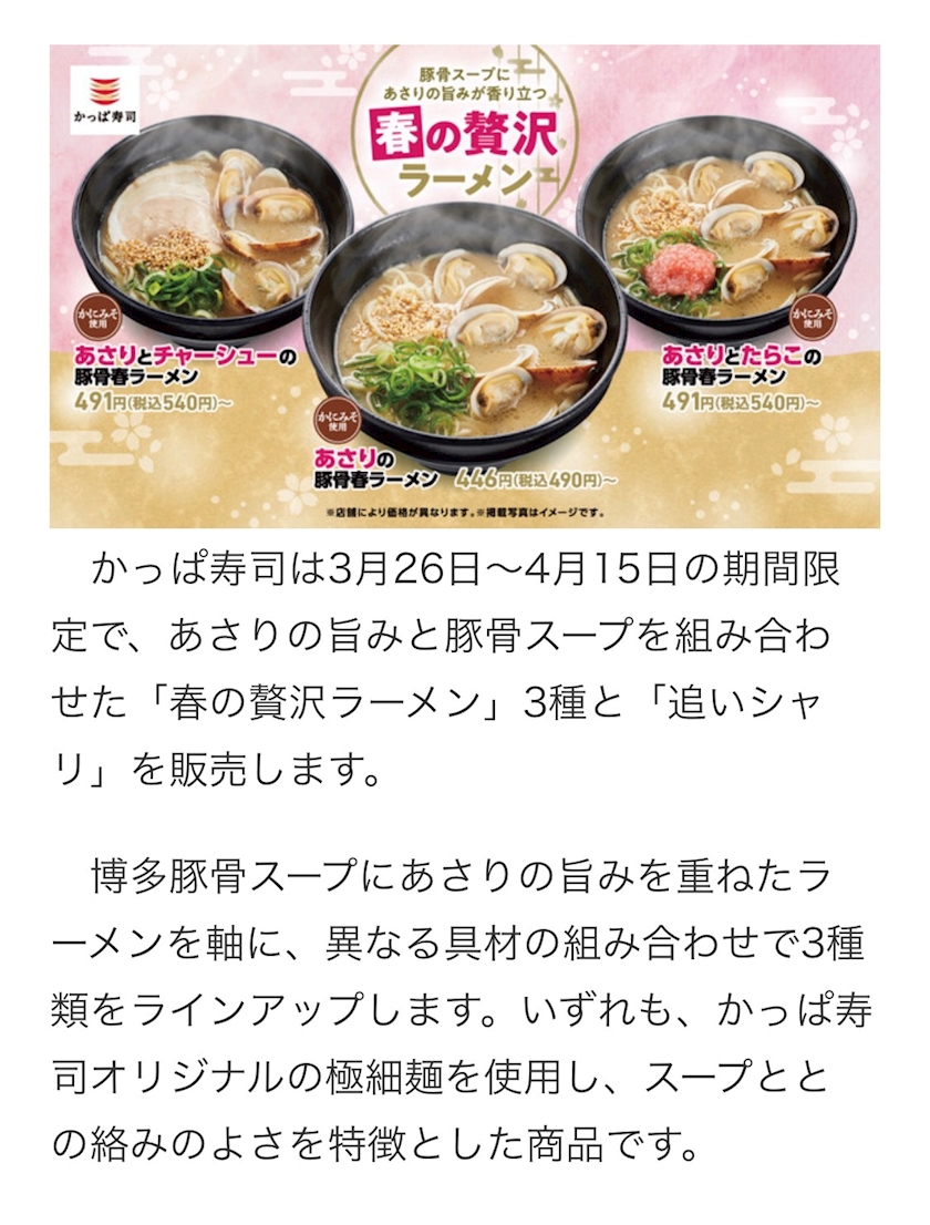 「春の贅沢ラーメン」3種と