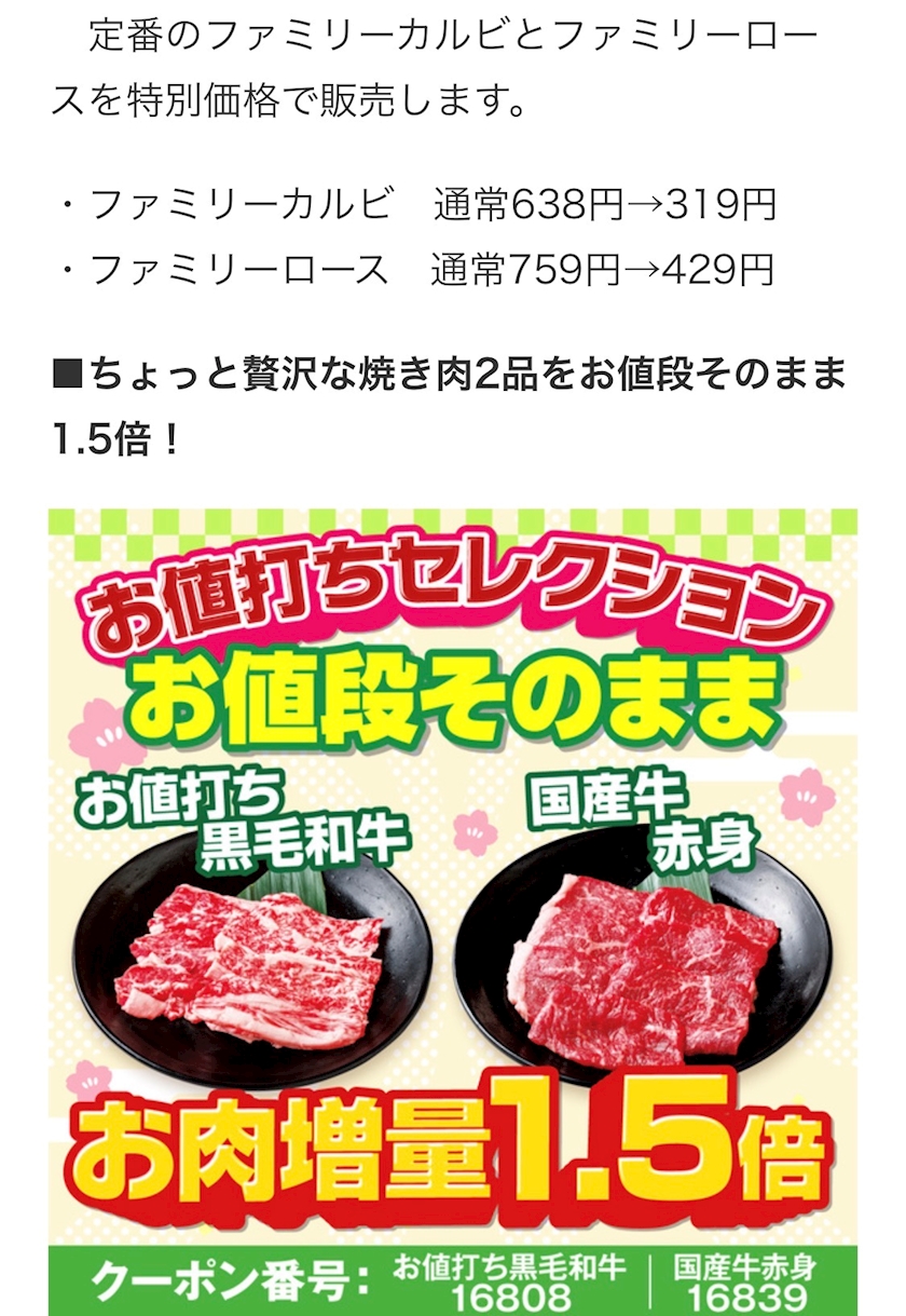 カルビ319円、1.5倍の...