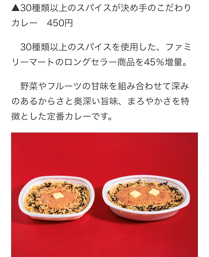 - 今週は「カレー」「明太スパゲッティ」がドでかい大盛りに!