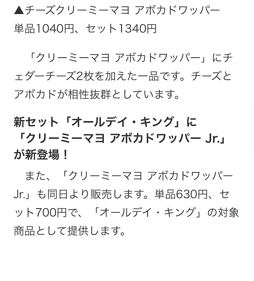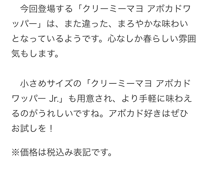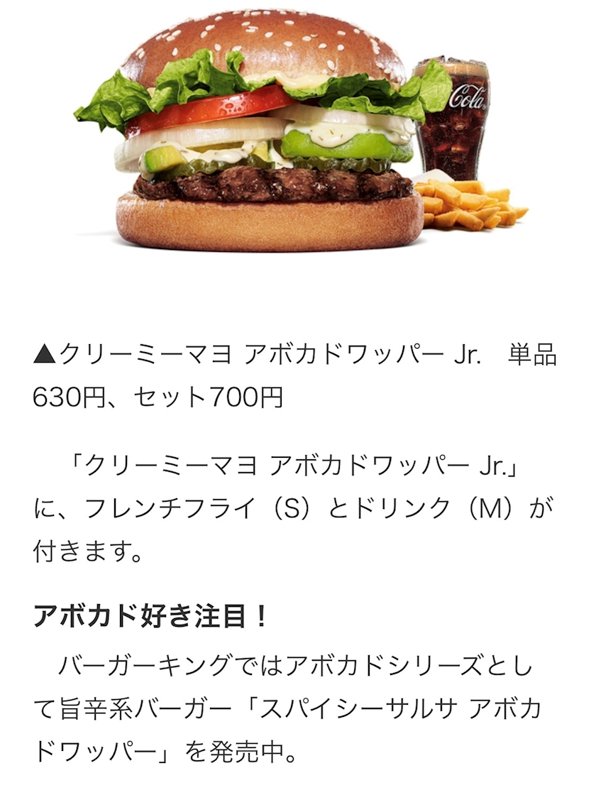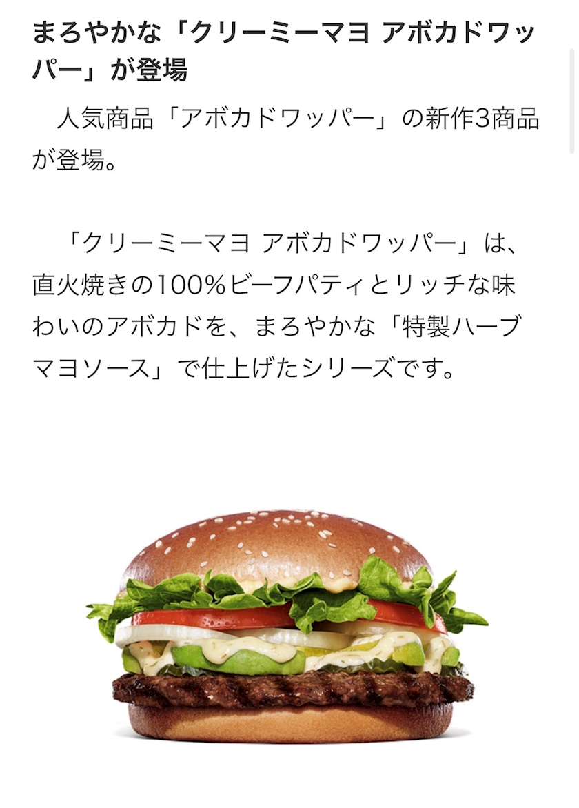 「クリーミーマヨ アボカドワッパー」のご紹介でした