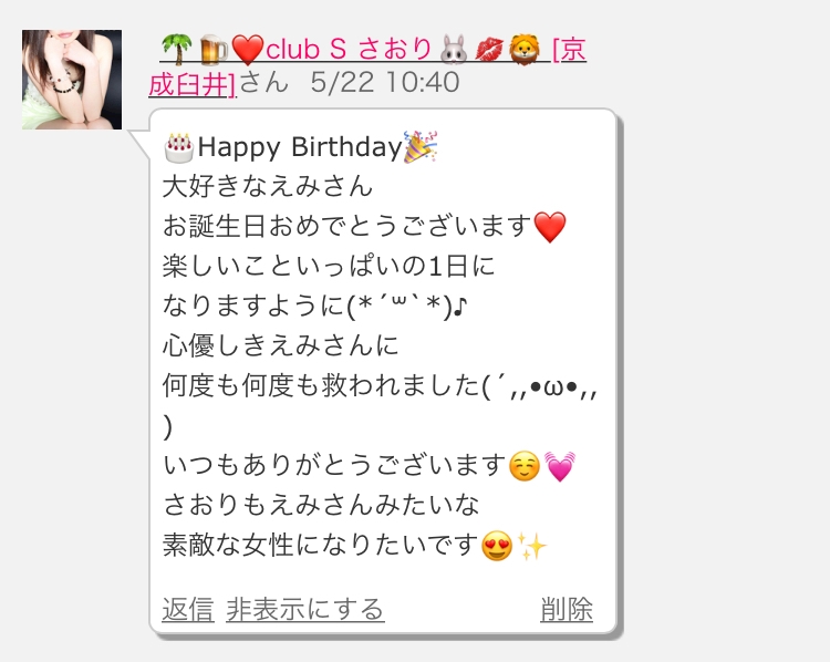 お祝いのお言葉ありがとうございました♡ - えみ❤️市川 朝・昼キャバ‼︎Raphael - 朝・昼キャバ!!Raphael 市川店・ラファエル - 市川の朝・昼キャバ