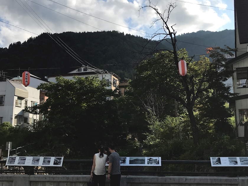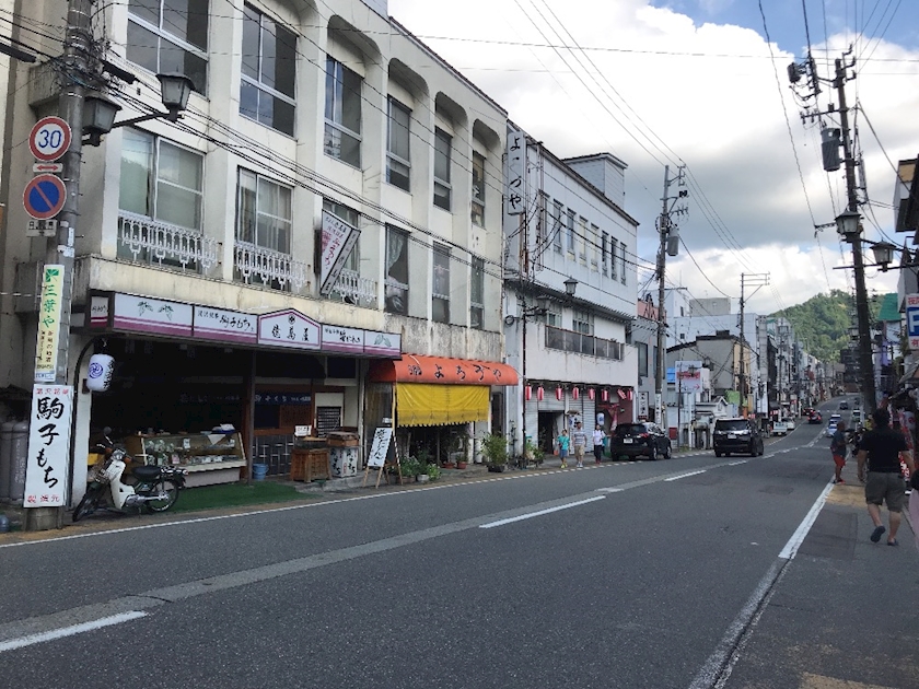 温泉街で