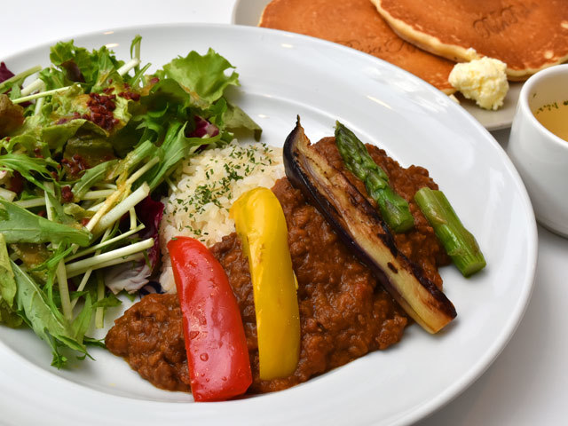 デザート系以外にも「パンケーキサンドイッチ」や「赤ワイン仕込みの熟成キーマカレー」など、食事系のメニューも豊富。