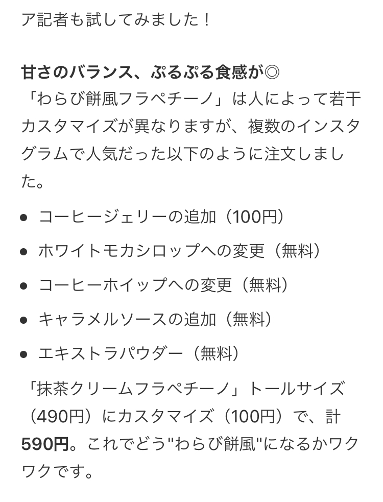「わらび餅風フラペチーノ」のご紹介でした