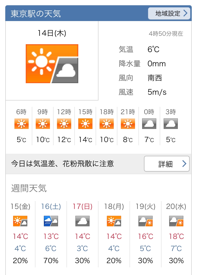 最高気温は14どちらもの予報です。