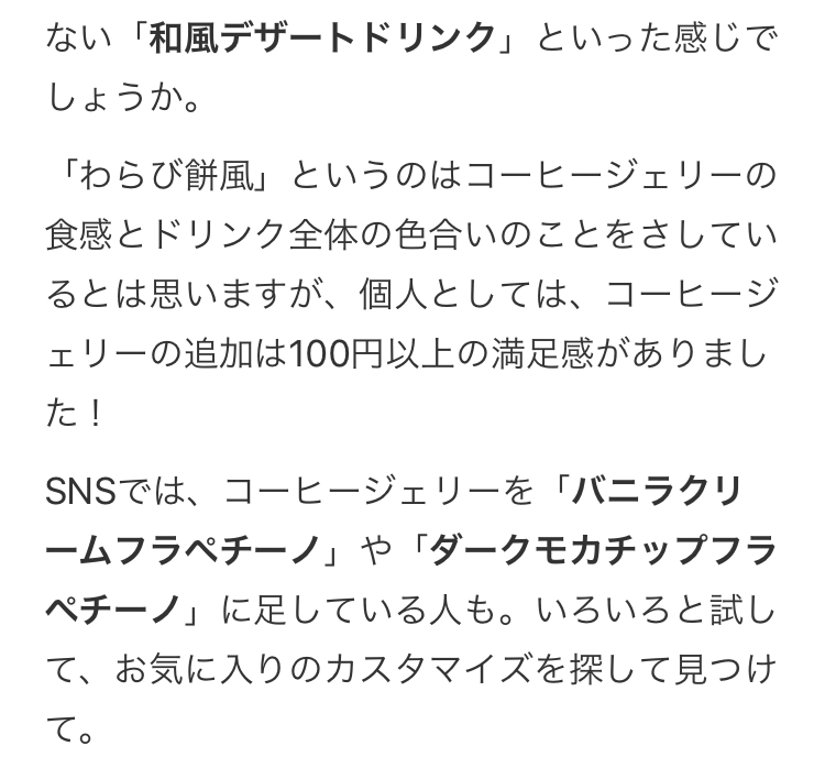 「わらび 餅 風 フラペチーノ」