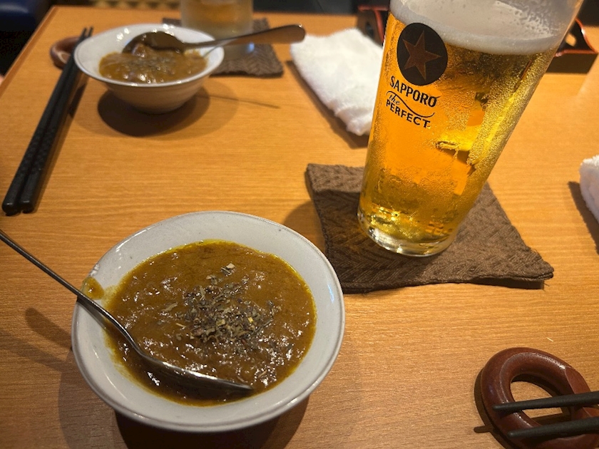 1杯目のビールとお通しのカレー!!!