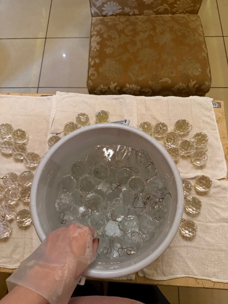 シャンデリア1つ1つ取って(店長が)