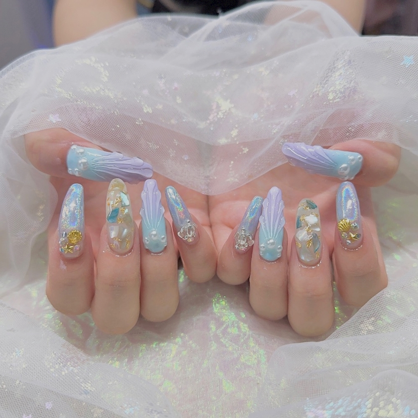 夏っぽくマーメイドネイル🧜♀️