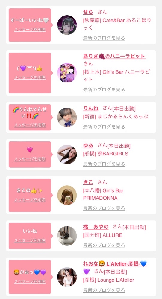 女の子の出勤情報を