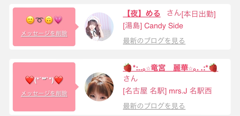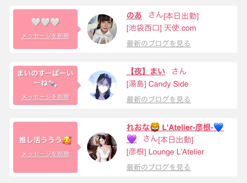 女の子の出勤情報を