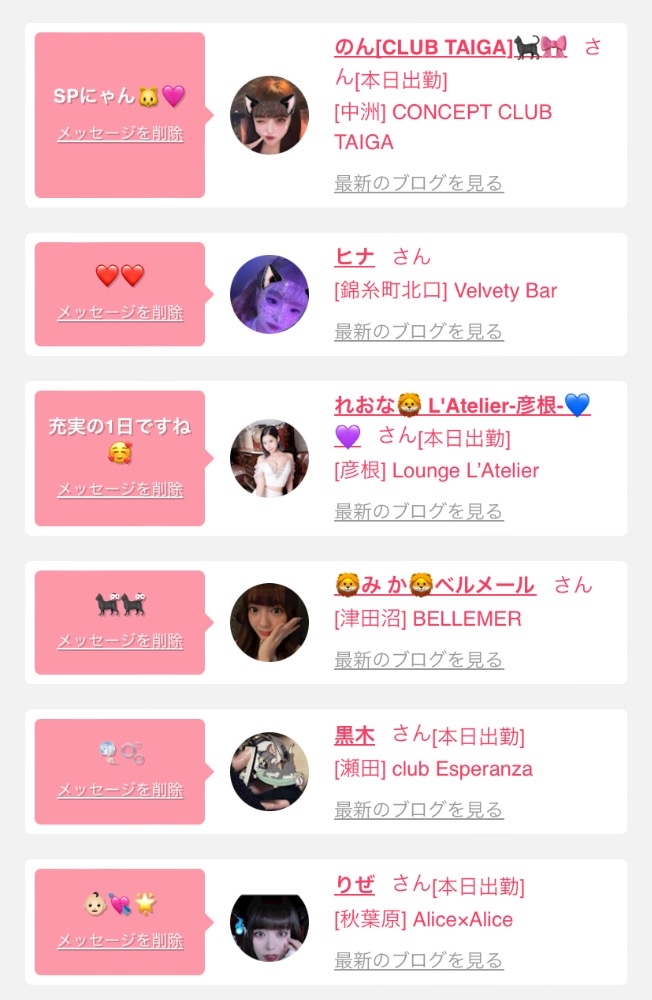 女の子の出勤情報を