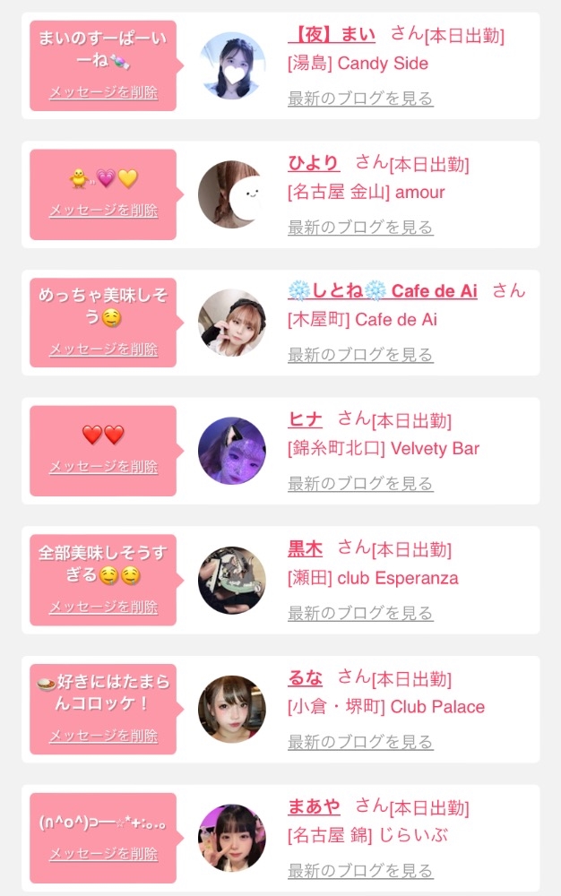女の子の出勤情報を