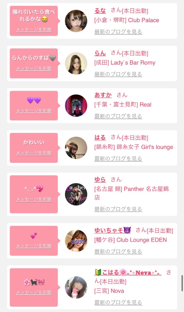 女の子の出勤情報を