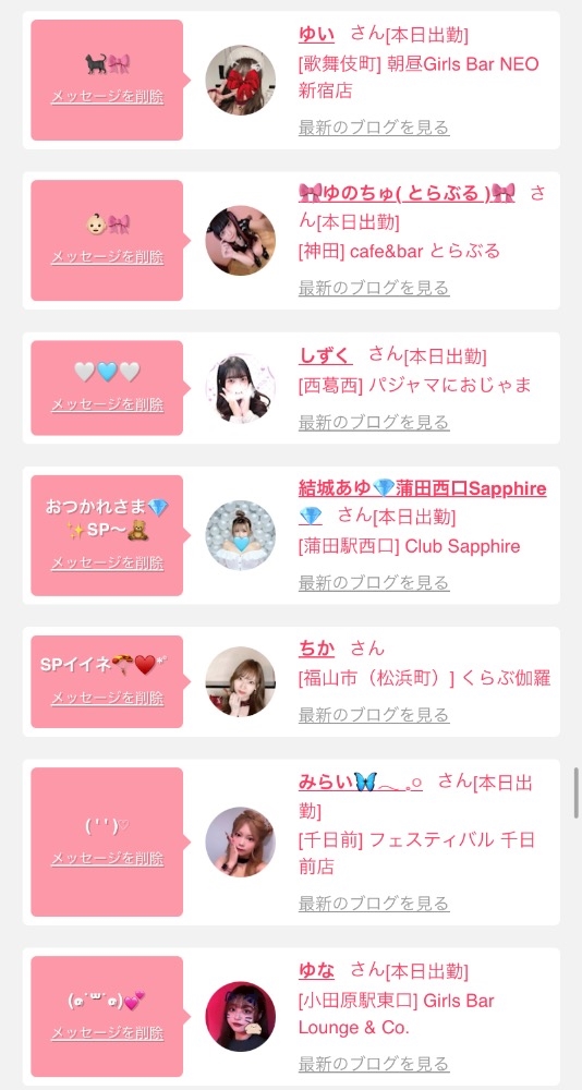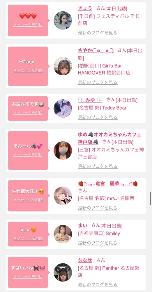女の子の出勤情報を
