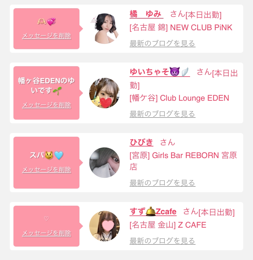 女の子の出勤情報を