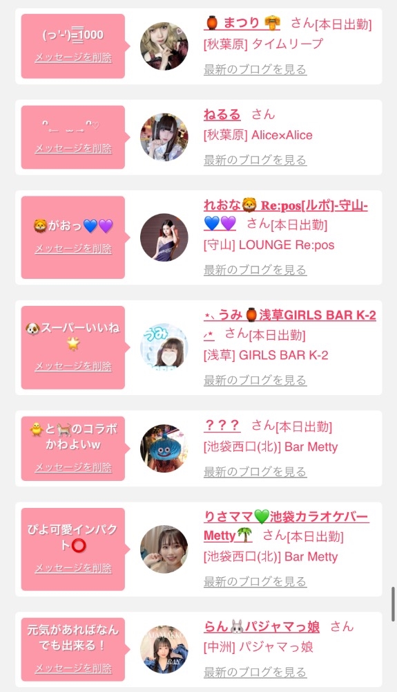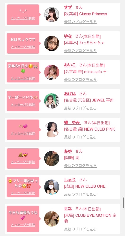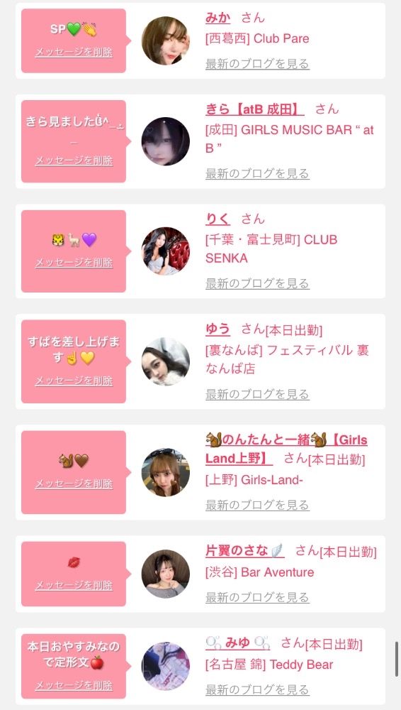 女の子の出勤情報を