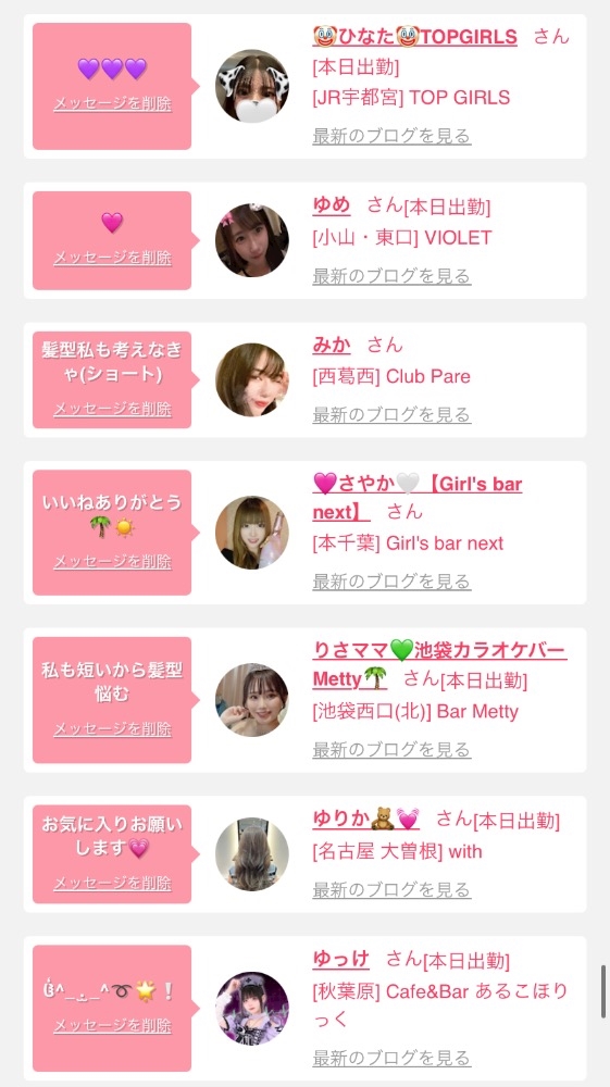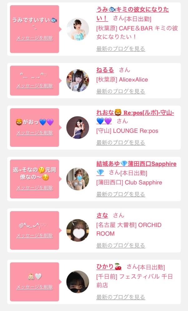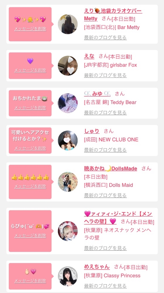 女の子の出勤情報を