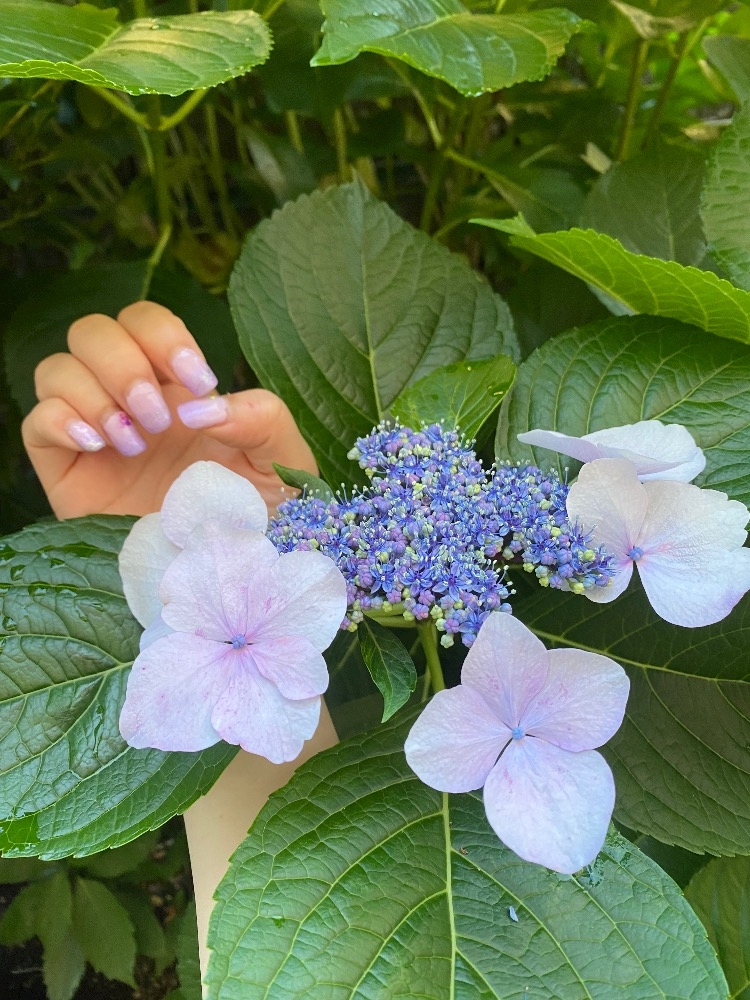 紫陽花風ネイル💅をして、