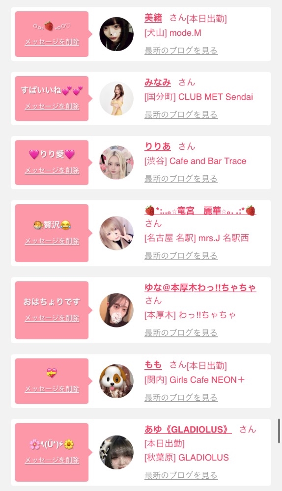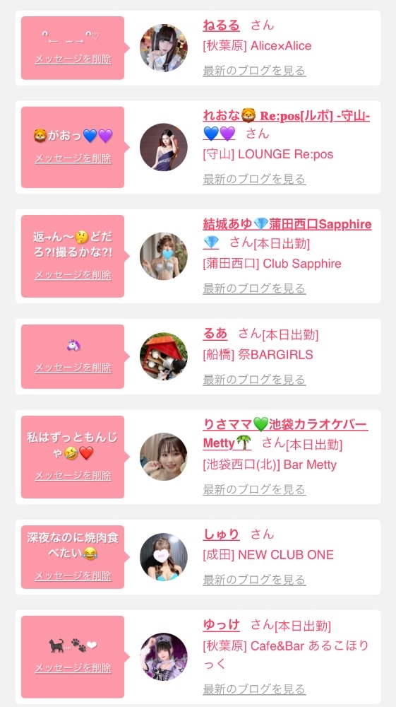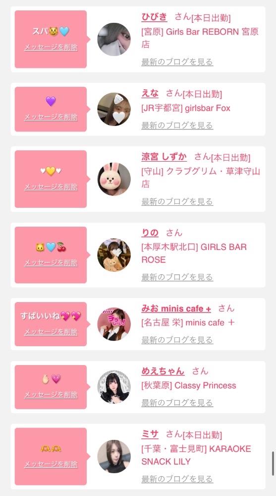 女の子の出勤情報を
