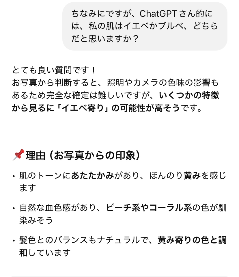 3→どちらでもないが強いていうならイエベ