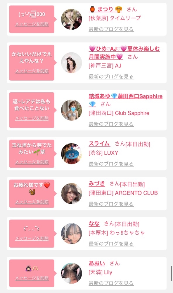 女の子の出勤情報を