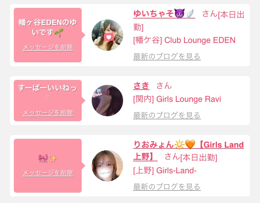 女の子の出勤情報を