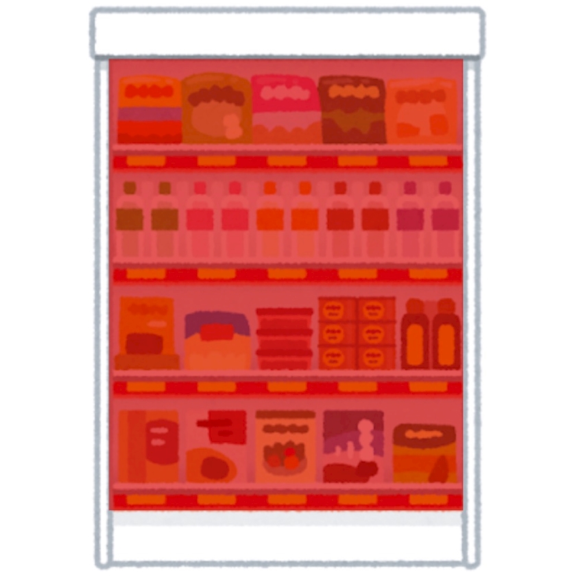 商品棚が赤のライトで