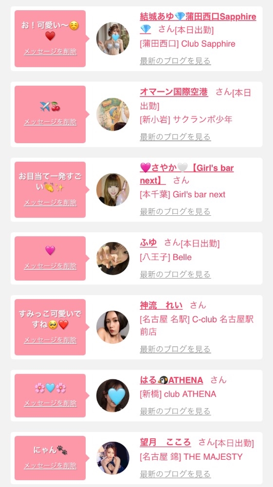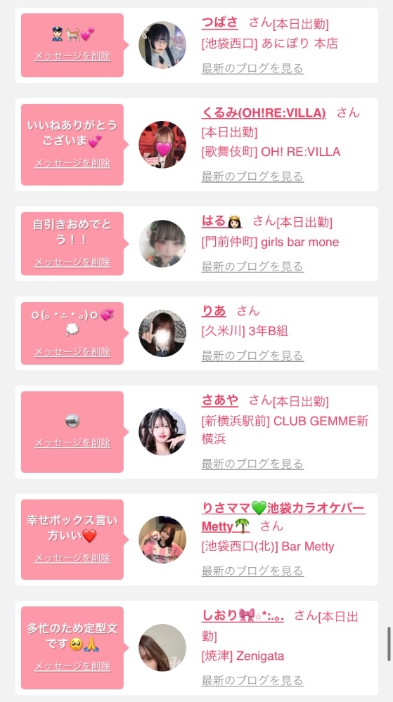 女の子の出勤情報を