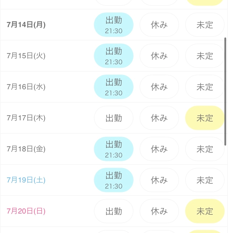 今週のシフト✨