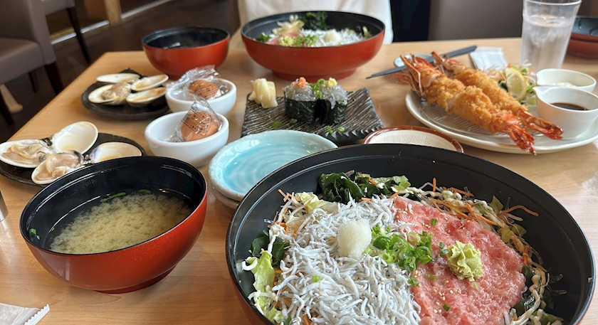 海鮮丼にエビフライにはまぐり、、、🤤