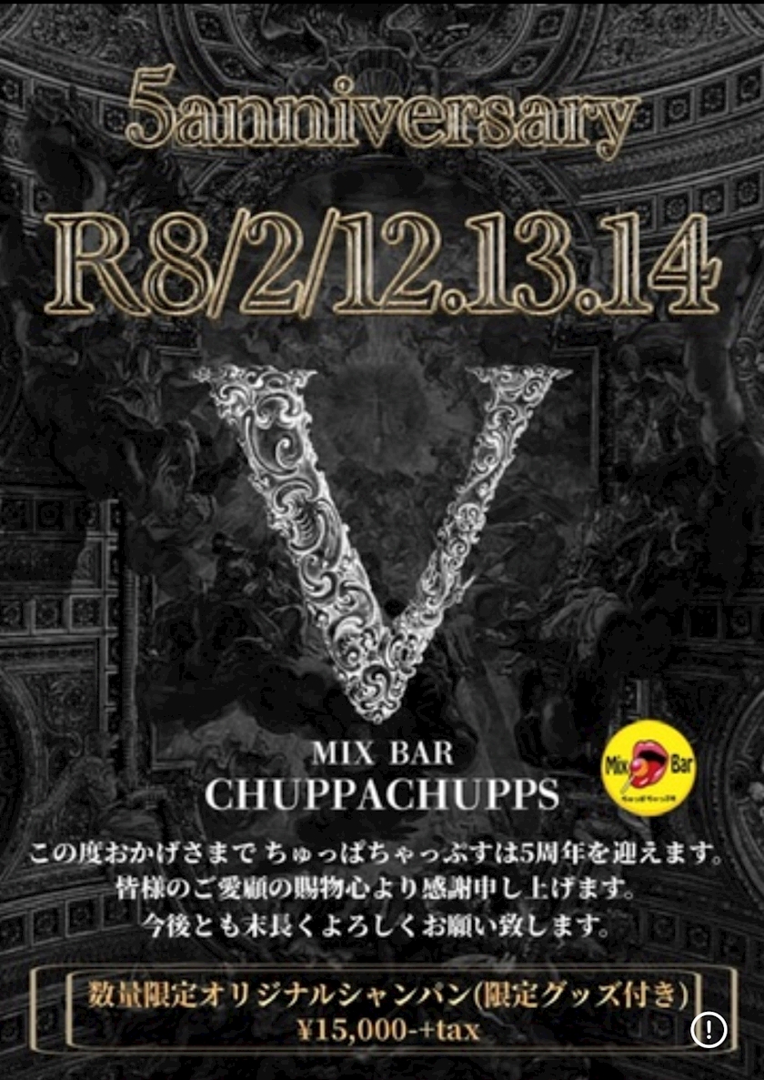 今年で5周年を迎えるちゅっぱちゃっぷすですが、今日か3日間周年イベントやってます🎉