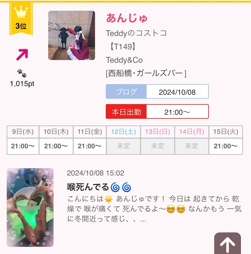 低気圧~~🥹 - あんじゅ - Teddy&Co・テディアンドコー - 西船橋のガールズバー