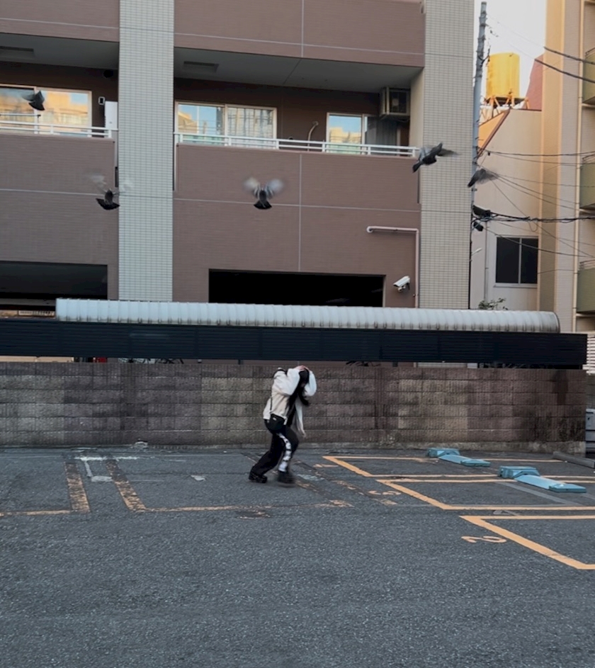 昨日の鳩追いかけて逆に逃げてるとわしゃでも貼っておきやす