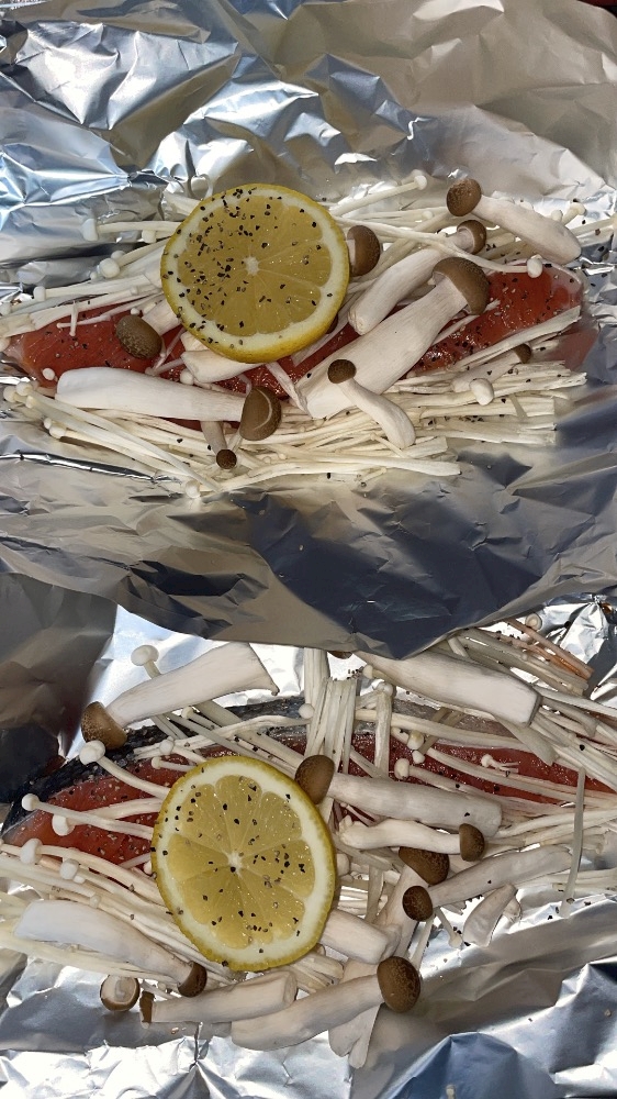 きょーは出勤前に鮭のホイル焼きつくった〜🐟🍴
