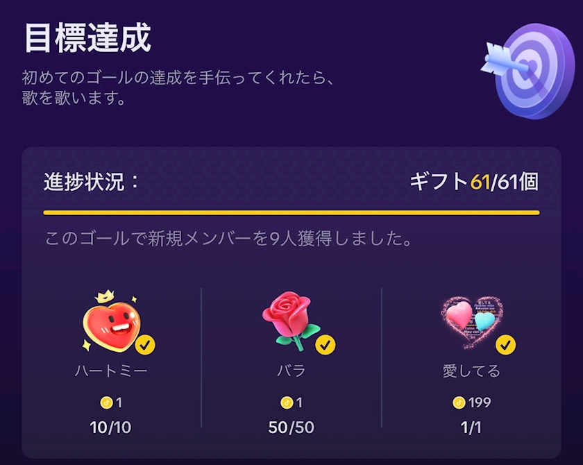 ライブゴールを設定したら、なんと達成させてくれたの🥺