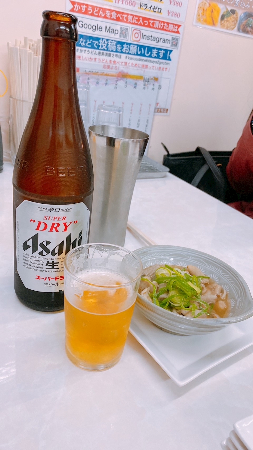 瓶ビールと牛すじ煮……?だっけなんか