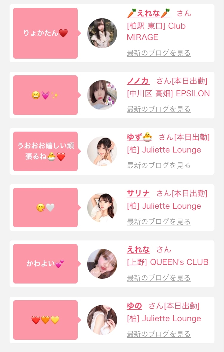 出勤情報とかお店での出来事とかあげてるから