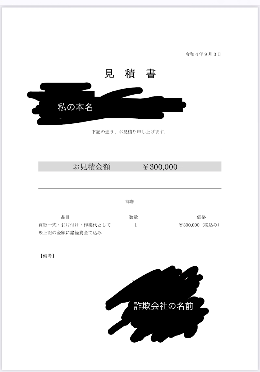 運び終わった頃に出た見積もり